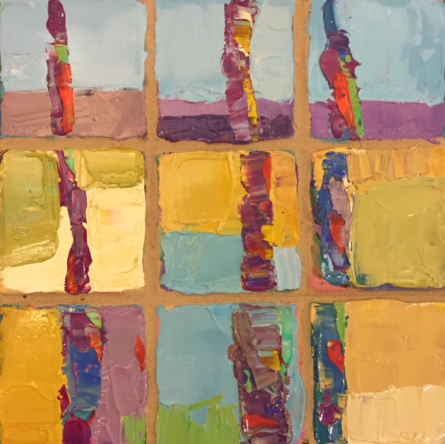 acrylic on ceramic tile with grout